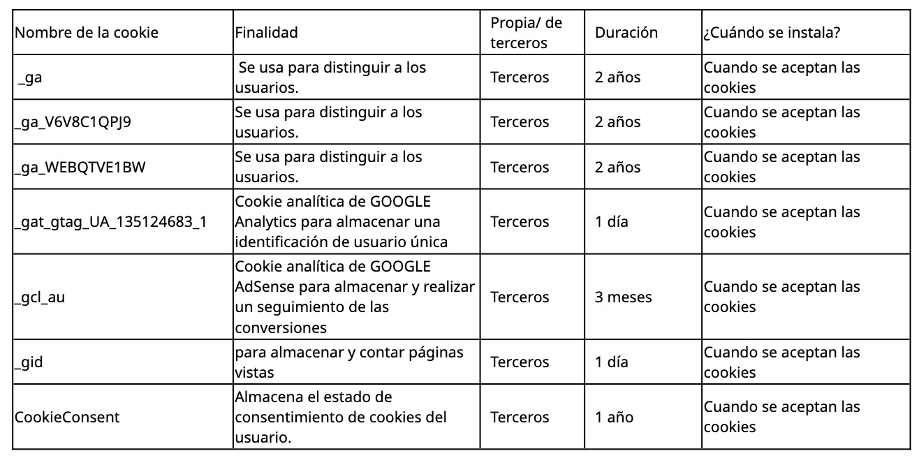 no nos haremos responsables de las políticas de privacidad de dichos sitios Web ni de las cookies que estos puedan